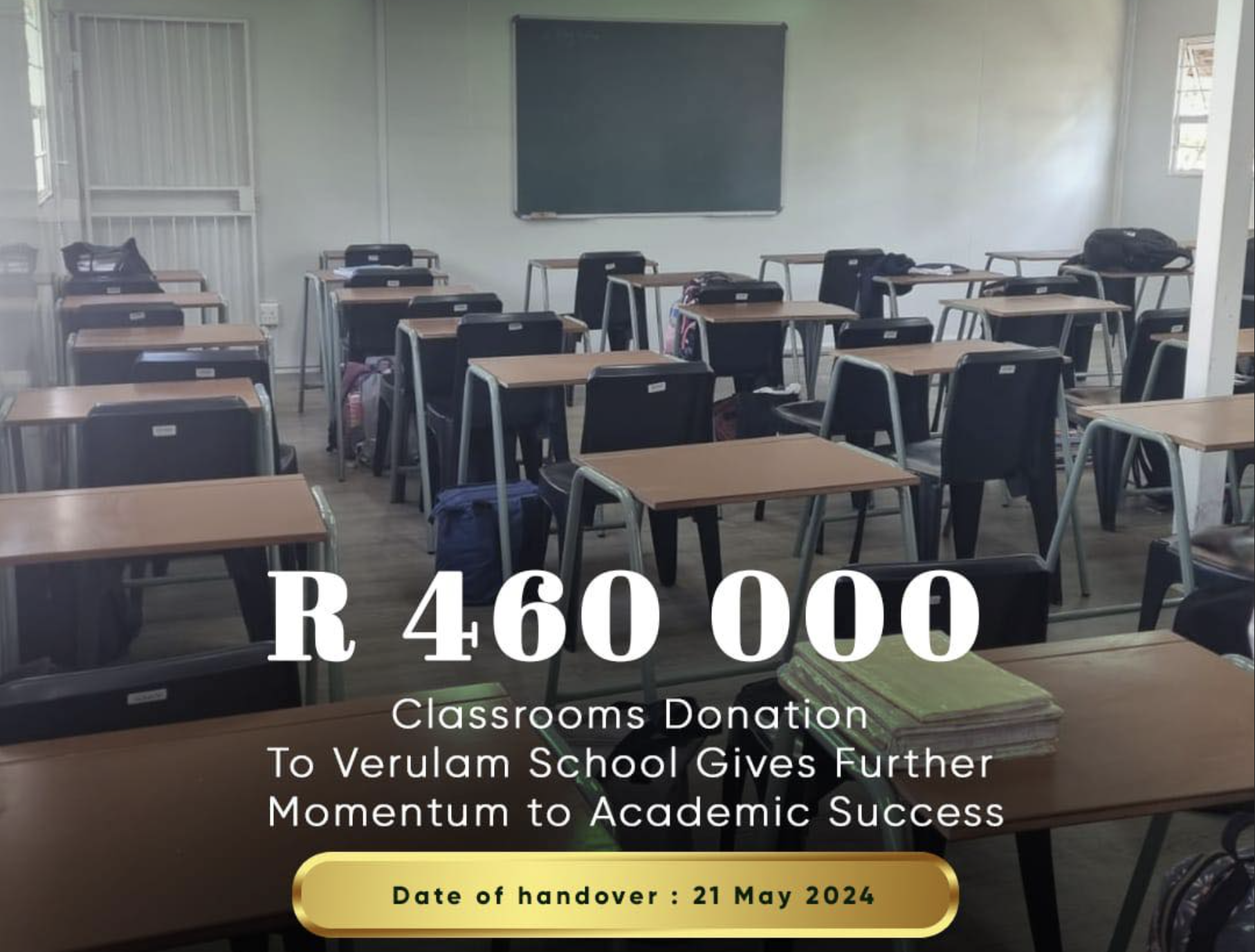 R460 000 Classrooms Donation To Verulam School Gives Further Momentum to Academic Success